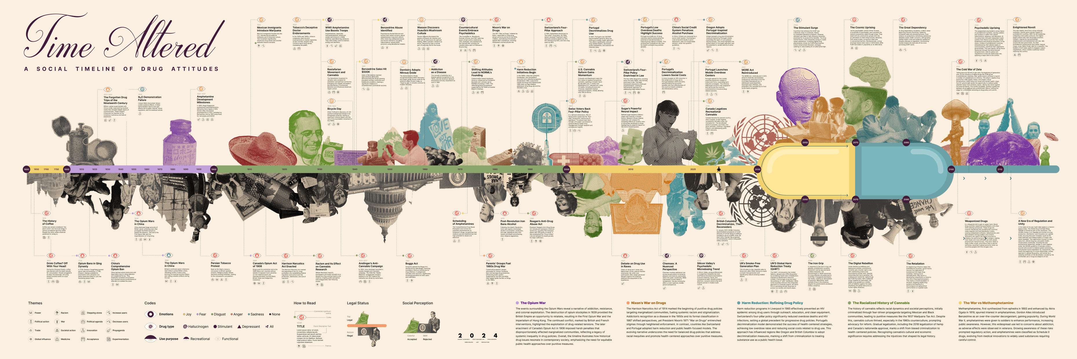 Time Altered is the infographic timeline reflecting the findings from our research, it explores and examines the history of substances from 1600 to current time, and imagines a fictional future 100 years forward. served as an investigation board in the control room.