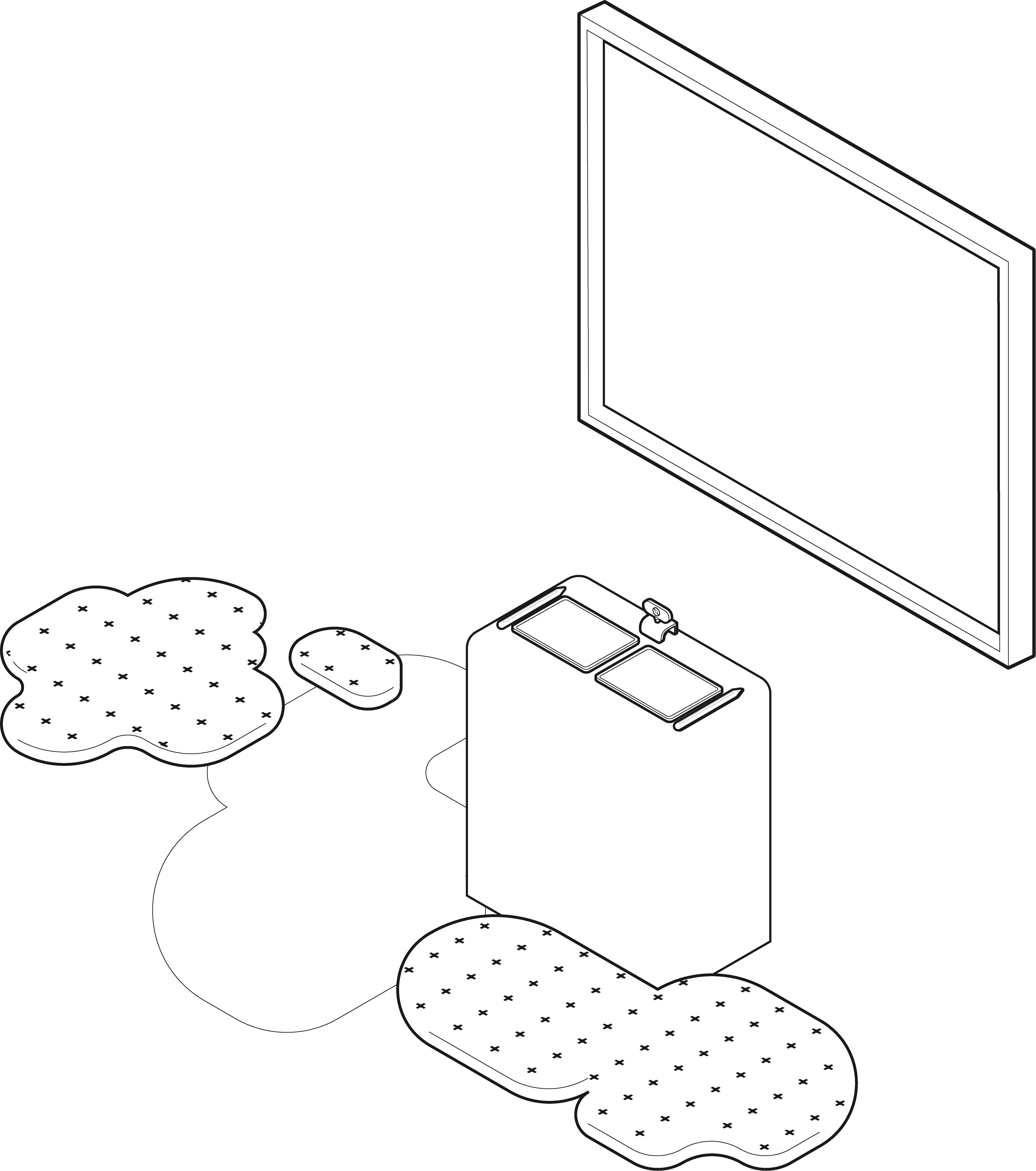 Fortex imitates nature for the users to feel grounded, patches of turfs are cut out distributed in Fortex's floor and wall, to imitate a sense of stability
